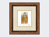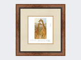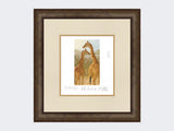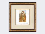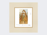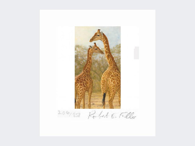 This limited edition print is of a young giraffe standing with an adult.