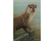 About this painting: For this composition, I chose to paint the otter with one paw poised, looking the viewer in the eye before it slips into the water.