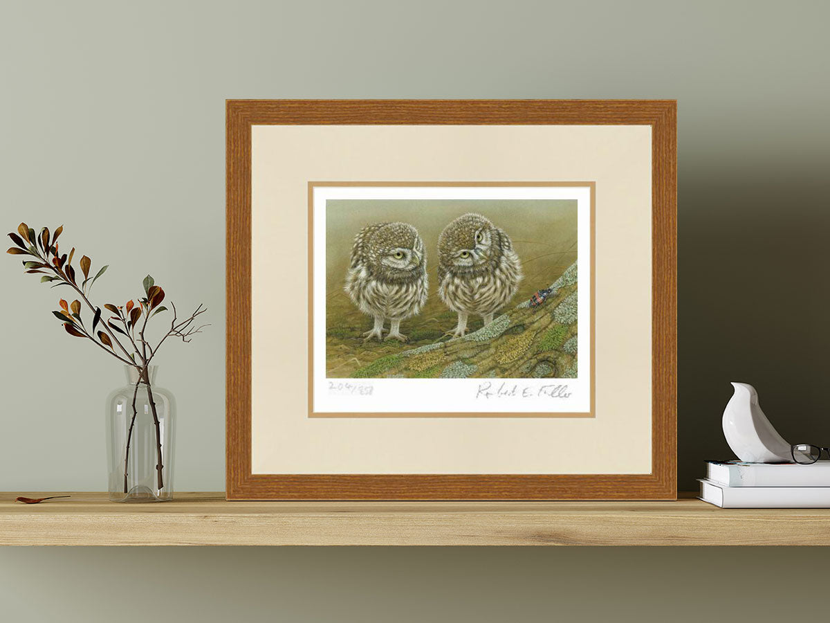 Kleine Eulen und Käfer | Kunstdruck in limitierter Auflage