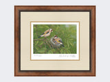 Dieser wunderbare Druck in limitierter Auflage zeigt einen Stieglitz und Küken im Nest.