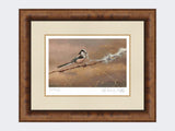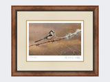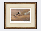 Dies ist ein beliebtes Gemälde einer Schwanzmeise beim Wollsammeln. Robert malte es, nachdem er einem Paar Schwanzmeisen beim emsigen Nestbau zugesehen hatte.