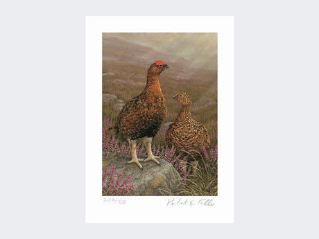Moorschneehuhn in Heidekraut | Kunstdruck in limitierter Auflage