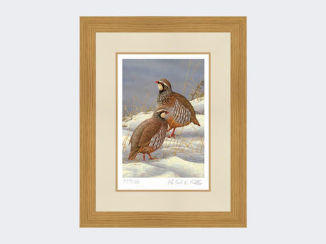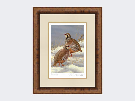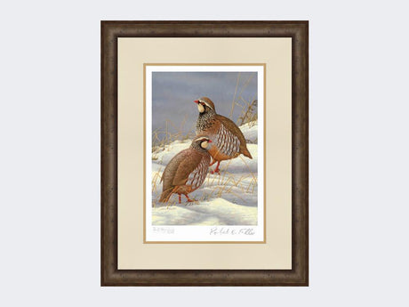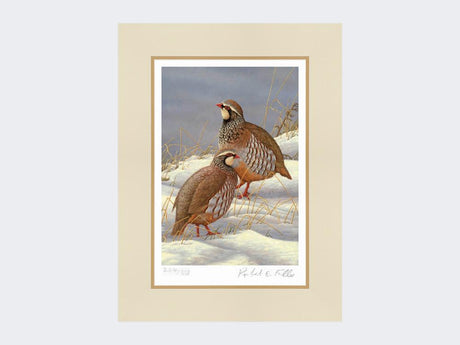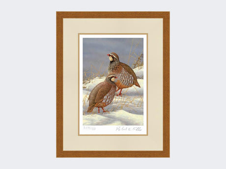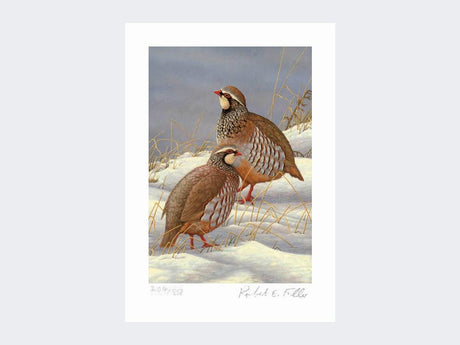 Rothühner im Schnee | Kunstdruck in limitierter Auflage
