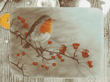 Dieser wunderschön gefertigte Arbeitsplattenschutz aus gehärtetem Glas zeigt ein prächtiges Rotkehlchen, das auf einem mit Beeren beladenen Weißdornzweig sitzt. Die Druckqualität ist außergewöhnlich und jedes Detail von Robert Fullers Gemälden wurde originalgetreu wiedergegeben.