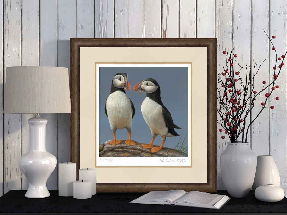 Balzende Papageientaucher | Kunstdruck in limitierter Auflage