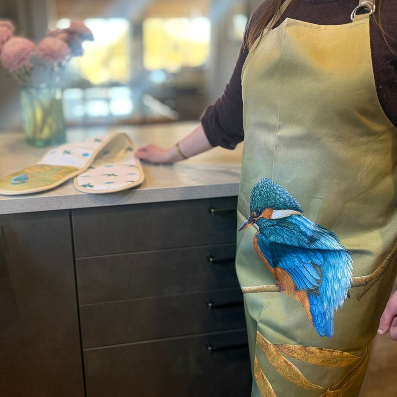 Doppeltes Ofenhandschuh- und Schürzen-Set „Courting Pheasants“ | 100 % schwere Baumwolle