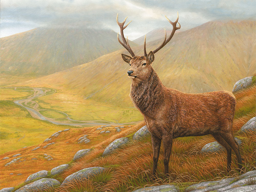Robert E. Fuller ist einer der bedeutendsten britischen Tiermaler. Er malt mit Acryl- und Ölfarben und bevorzugt einen detailreichen, realistischen Stil. Sein Engagement für Authentizität ist unübertroffen. Robert unternimmt außerordentliche Anstrengungen, um das Verhalten und den Charakter seiner wilden Motive genau wiederzugeben, und verbringt Monate im Feld, um ein bestimmtes Tier oder einen bestimmten Vogel sorgfältig zu studieren, bevor er sich hinsetzt, um es in seinem Atelier zu malen. Der Künstler verbringt Monate damit, ein bestimmtes Tier oder einen bestimmten Vogel zu studieren, bevor er sich hinsetzt, um das Verhalten und den Charakter seiner wilden Motive in seinen Kompositionen genau wiederzugeben. Seine Bilder werden nach vor Ort aufgenommenen Fotografien gemalt.