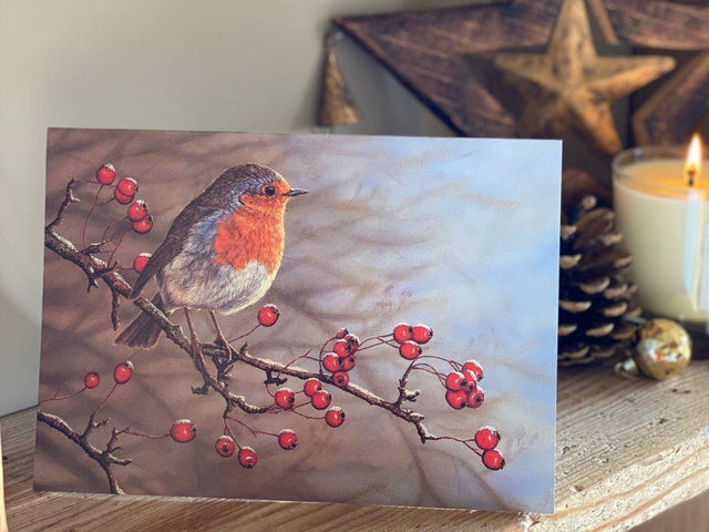 Rotkehlchen auf Weißdorn | Individuelle Karte | Weihnachtsvers ist auf Lager und wird versandt, sobald es wieder verfügbar ist