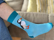 Chaussettes super douces de couleur beige avec un portrait de tête et d'épaules d'un levraut sur chaque chaussette.