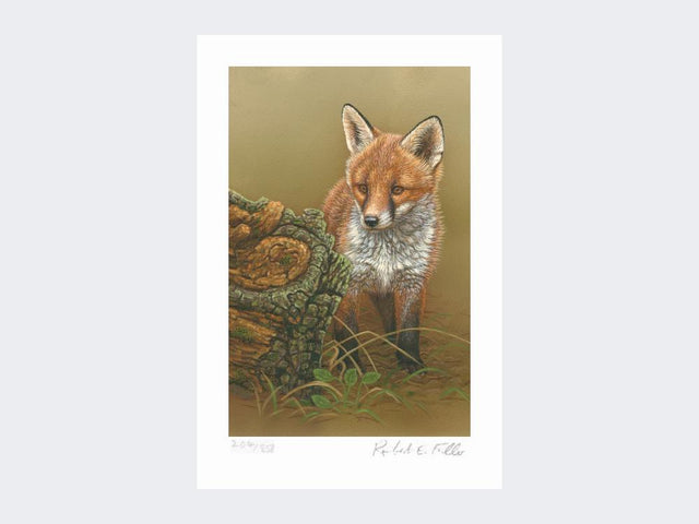 Cette magnifique impression en édition limitée représente un renardeau effronté.