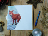 Lot de 5 cartes de Noël de Robert E Fuller représentant un renard regardant par-dessus son épaule sur fond enneigé.