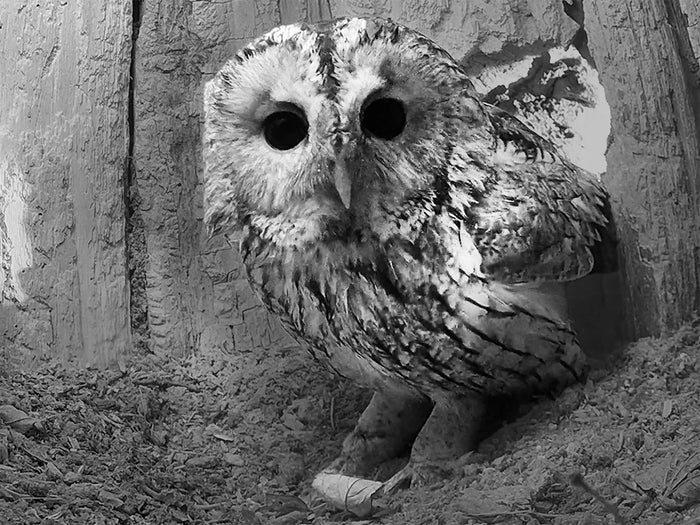Spot owls as they compete for new nesting sites. The tawny owls are always first to breed and the fight for the best site is real!