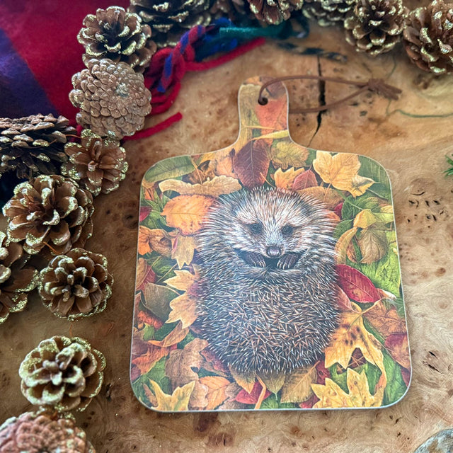 Chopping boards available in two sizes featuring Robert E Fuller’s beautiful hedgehog painting – perfect for everyday kitchen prep.
