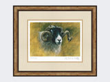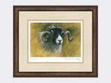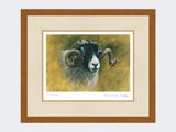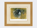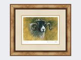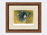 This popular print shows the head and shoulders portrait of a Swaledale sheep. Swaledales are a ‘proper’ Yorkshire breed that roam the sweeping dales hillsides. They have black faces which make them interesting subjects to paint.